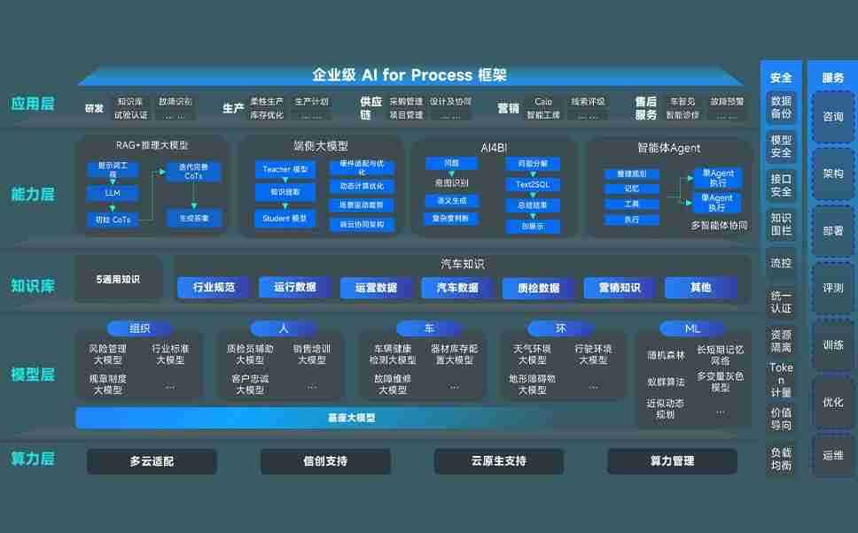 端到端的一站式AI工作空间深度融合了从企业战略规划到日常经营的全流程业务板块,,定向解决车企内部领域多、、、、部门多、、、、链条长、、、、场景碎片化等难题,,,,支持车企快速构建以AI为核心的生产力写作体系,,实现任务执行与AI能力的无缝集成与交互